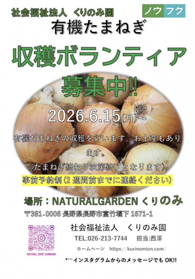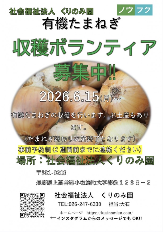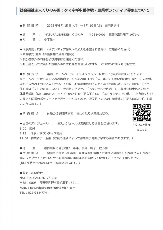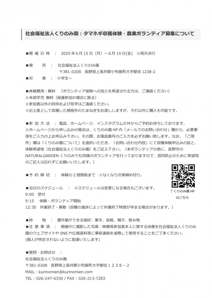 お問い合わせ先:社会福祉法人くりのみ園 026-247-6330